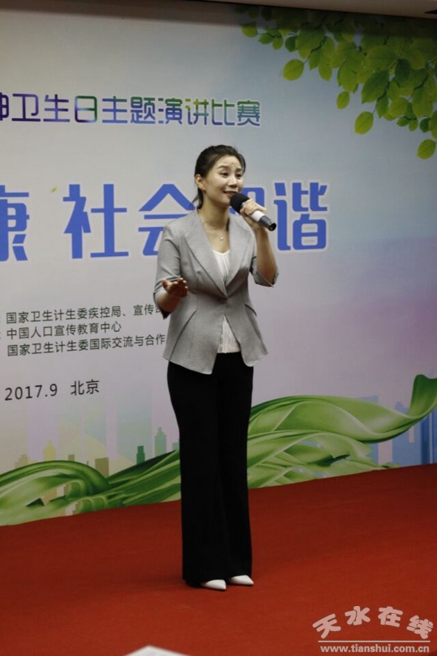 9月27日,由國家衛(wèi)生計生委疾控局、宣傳司主辦,中國人口宣教中心、國家衛(wèi)計委國際交流與合作中心承辦的“世界精神衛(wèi)生日”主題演講比賽復賽在北京舉行,來自全國32個省、自治區(qū)、直轄市的32位參賽者激烈角逐,我院安麗君同志代表甘肅省參加全國復賽,獲得優(yōu)秀獎。