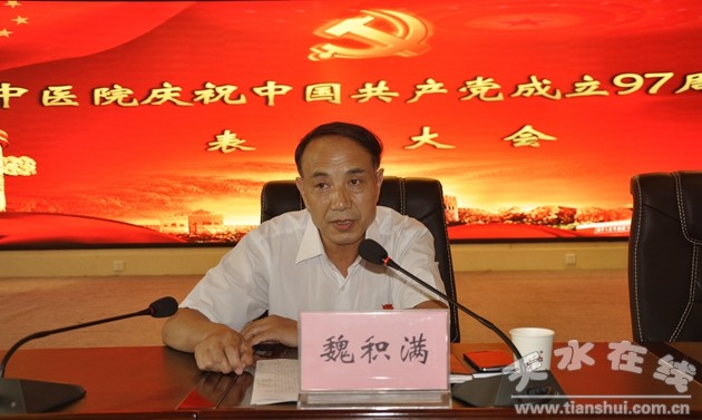 6月29日下午,天水市中醫(yī)醫(yī)院舉行慶祝中國共產(chǎn)黨成立97周年暨精神文明建設(shè)表彰大會。全院130余名黨員干部參加了會議,會議由院黨委書記李曉峰主持。派駐市衛(wèi)計委紀檢監(jiān)察組組長魏積滿應(yīng)邀出席會議。