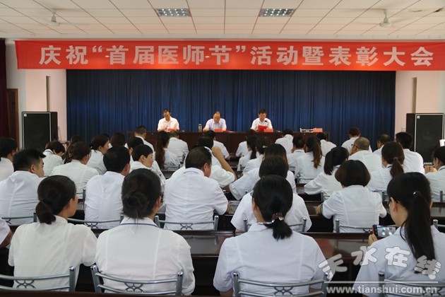 為慶祝首屆中國醫(yī)師節(jié),彰顯黨和政府對廣大醫(yī)師和醫(yī)務(wù)人員的關(guān)愛和厚望,大力弘揚(yáng)“敬佑生命、救死扶傷、甘于奉獻(xiàn)、大愛無疆”的衛(wèi)生健康崇高精神,8月18日,天水市第五人民醫(yī)院以“尊醫(yī)重衛(wèi),共享健康”為主題,召開了慶祝首屆中國醫(yī)師節(jié)暨表彰大會(huì),大會(huì)由副院長馬小平主持,院黨支部書記、院長潘臨平出席會(huì)議并講話,全院黨員干部職工共計(jì)100余人出席大會(huì)。