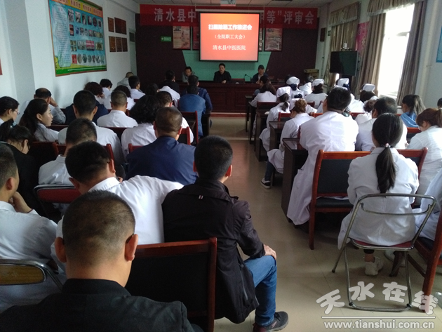 為進一步推進醫(yī)院掃黑除惡專項斗爭活動的開展,營造全員參與的濃厚氛圍,5月27日下午,清水縣中醫(yī)醫(yī)院院在門診綜合樓五樓會議室召開“掃黑除惡專項斗爭”再動員再部署工作推進會。醫(yī)院黨政領導班子成員、全院中層干部及全院職工參加了會議,會議由院長、黨支部書記蔡貴生同志主持。
