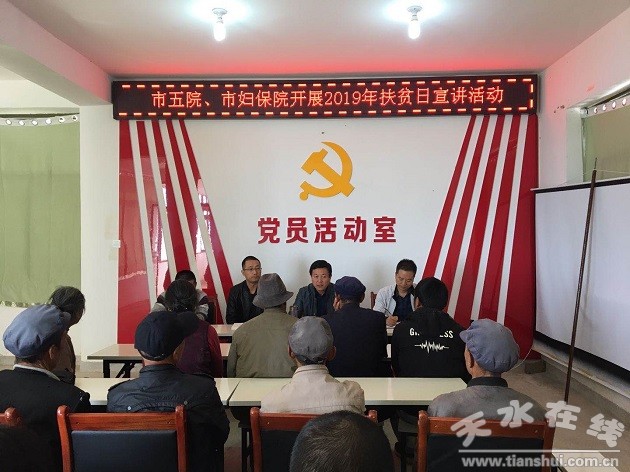為扎實(shí)開展“不忘初心、牢記使命”主題教育活動,為民服務(wù)解難題,進(jìn)一步推進(jìn)精準(zhǔn)扶貧工作,更加有效地幫助貧困戶精準(zhǔn)脫貧。在第6個國家扶貧日10月17日上午,市婦幼保健院黨委委員、副院長馬利帶領(lǐng)黨員干部和專家一行5人,赴武山縣花坪村開展扶貧政策宣講、義診、上門入戶對接、送醫(yī)送藥等系列幫扶活動。