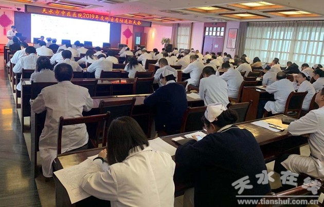 1月10日下午,天水市中醫(yī)院在住院部十六樓多功能廳召開了2019年度科室考核述職大會。院領(lǐng)導(dǎo)班子及科室負責人、護士長、科秘書共計90余人參加了會議。