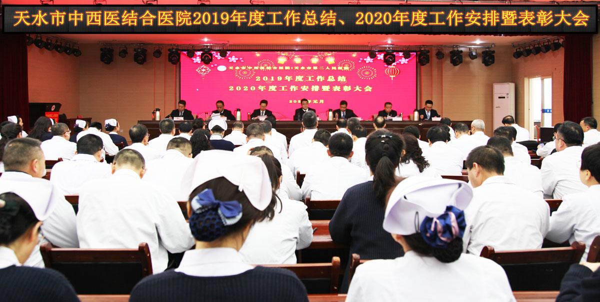 元月21日上午,天水市中西醫(yī)結合醫(yī)院(市二院)在多功能廳召開2019年工作總結和2020年工作安排暨表彰會議。會議由黨委副書記、院長唐志鋒主持,班子成員,兩院區(qū)中層干部和職工代表210余人參加。