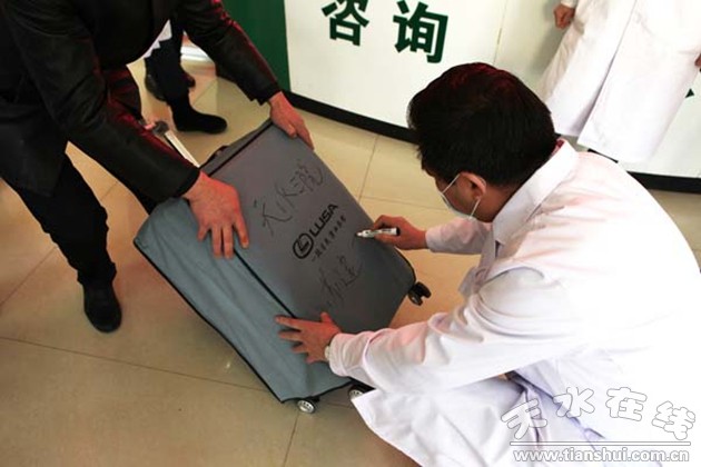 。ㄗ蛱欤┥衔纾覜]有像往常那樣賴床不起,一大早便到了醫(yī)院,醫(yī)院同事為我理了發(fā),丁書記、李院長和同事們都來為我送行、合影留念,細(xì)心的丁書記發(fā)現(xiàn)我的行李箱上沒有標(biāo)簽,怕我到了武漢找不到行李,他半蹲在地上,在行李箱上寫下:“天水三院蘇建建”幾個(gè)字,突然感覺眼睛濕潤了,我更加明白了我不是一個(gè)人去馳援武漢,讓我更加堅(jiān)定了:“要在保護(hù)好自己的同時(shí),給予更多人幫助,協(xié)助醫(yī)療隊(duì)做好本次援助工作”。后來,市委市政府領(lǐng)導(dǎo)、市衛(wèi)健委領(lǐng)導(dǎo)為我們送行,囑咐我們一定平平安安地去、健健康康地回。同事們紛紛趕來為我送行、為我準(zhǔn)備生活用品、防護(hù)用品,真的很感動(dòng)……到了蘭州,省上領(lǐng)導(dǎo)為我們舉行了出征儀式,大學(xué)同學(xué)為我來送行……除了感動(dòng)、感謝,不知道用什么語言來表達(dá)。下午6點(diǎn)我們從蘭州踏上了前往武漢的征程,一直到這一刻,凌晨1點(diǎn)50分才安頓下來。