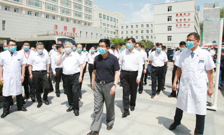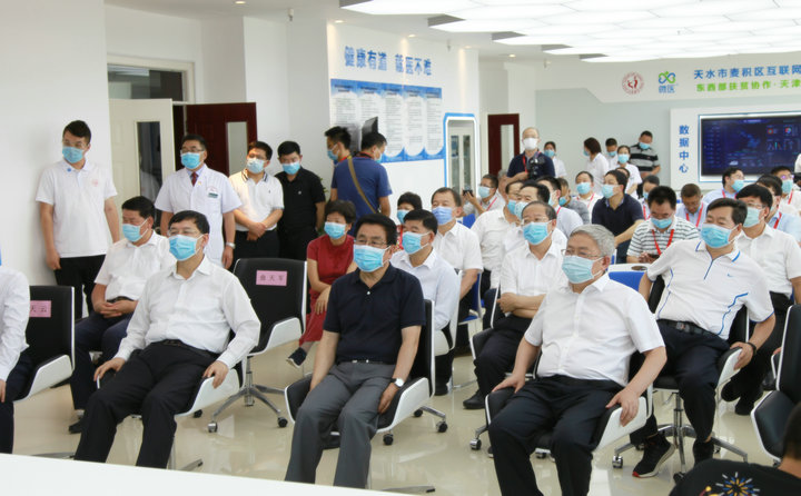 7月28日下午,省委書記、省人大常委會(huì)主任林鐸,國務(wù)院扶貧開發(fā)領(lǐng)導(dǎo)小組副組長、國務(wù)院扶貧辦主任劉永富,國務(wù)院扶貧辦副主任洪天云,天津市委副書記陰和俊,甘肅省委副書記孫偉,常務(wù)副省長宋亮在甘肅省政協(xié)副主席、天水市委書記王銳、天水市市長王軍的陪同下,深入天水市中西醫(yī)結(jié)合醫(yī)院(市二院)調(diào)研“東西部扶貧協(xié)作·天津市對口幫扶項(xiàng)目——天水市麥積區(qū)互聯(lián)網(wǎng)+醫(yī)療健康平臺(tái)”的建設(shè)運(yùn)行情況。國務(wù)院扶貧辦和甘肅省委、省政府,天津市委、市政府領(lǐng)導(dǎo)及兩地企業(yè)家約150余人參加了調(diào)研。