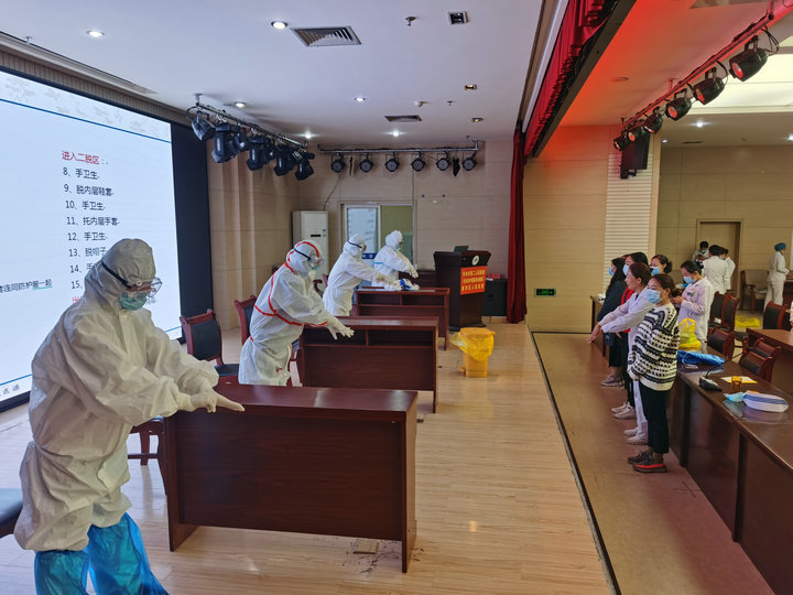 培訓(xùn)會由護理部主任陳少娟主持,院感科主任彭燕主講,分為三個環(huán)節(jié)進行。第一環(huán)節(jié),彭燕主任從“全球洗手日”主題及意義、手衛(wèi)生重要性及七部洗手法、新冠肺炎疫情防控相關(guān)知識、醫(yī)廢處置及穿脫防護用品流程等方面,結(jié)合醫(yī)院實際工作進行了深入淺出的講解。第二環(huán)節(jié),由6名護士長上臺對七部洗手法進行了現(xiàn)場演示和注意事項解讀,然后全體人員進行了七部洗手法實操練習(xí)。第三環(huán)節(jié),培訓(xùn)人員分4組,由院感科、護理部指導(dǎo)老師分工負責(zé),進行了醫(yī)廢處置流程及穿脫防護用品流程實操培訓(xùn)。