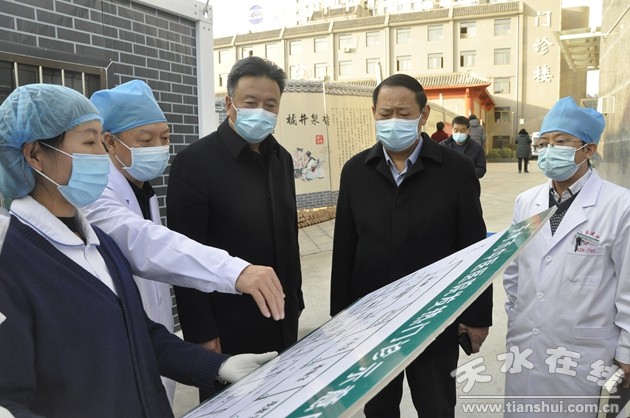 11月23日下午,省衛(wèi)健委副主任張浩、基層處處長李清霞帶領(lǐng)甘肅省疫情防控和衛(wèi)生健康重點工作督查組,在天水市衛(wèi)健委主任陳克孝、副主任曹惠靈和計生協(xié)會秘書長楊智才的陪同下,蒞臨天水市中醫(yī)醫(yī)院開展督查工作。