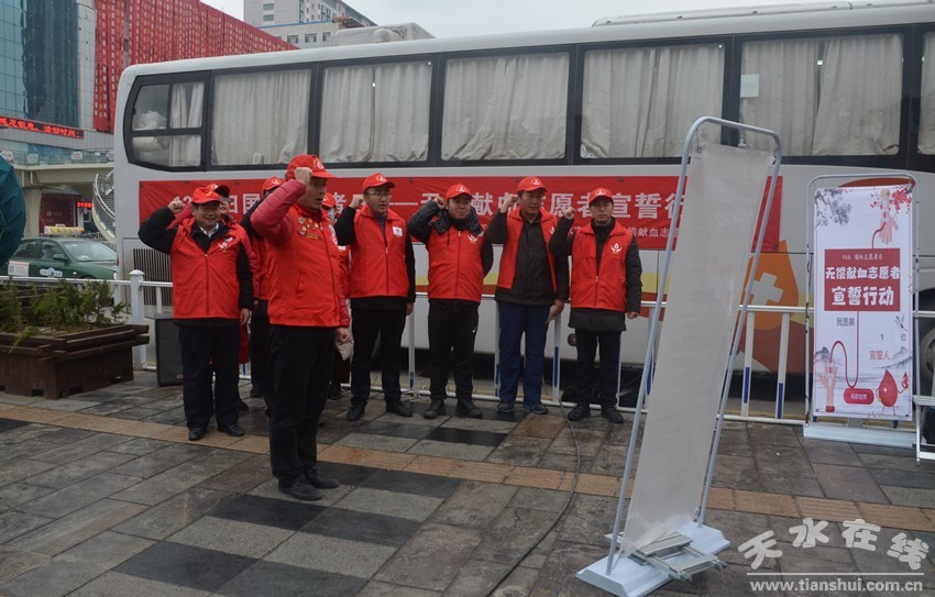 活動(dòng)中,在天水市紅十字無償獻(xiàn)血志愿者服務(wù)隊(duì)隊(duì)長崔志剛的帶領(lǐng)下,無償獻(xiàn)血志愿服務(wù)者們進(jìn)行了莊嚴(yán)宣誓:“我志愿加入無償獻(xiàn)血志愿服務(wù)組織。我承諾:為社會(huì)無償獻(xiàn)血事業(yè),盡己所能,提供服務(wù),貢獻(xiàn)個(gè)人時(shí)間,不計(jì)報(bào)酬,幫助他人,踐行志愿精神,傳播先進(jìn)文化,為建設(shè)文明和諧、平等友愛、共同前進(jìn)的美好社會(huì)貢獻(xiàn)力量!倍盏暮L(fēng)抵擋不住志愿者們的熱情,宣誓結(jié)束后,志愿者們向過往的市民發(fā)放宣傳資料、宣傳無償獻(xiàn)血相關(guān)知識(shí),積極動(dòng)員招募街頭過往行人加入無償獻(xiàn)血者行列,為寒冷的冬日增添了溫暖,形成了一道亮麗的風(fēng)景。