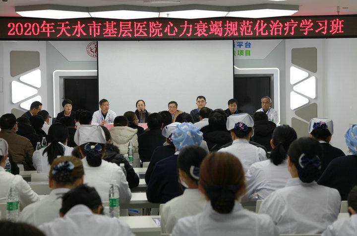 12月11日,甘肅省醫(yī)學(xué)繼續(xù)教育項目2020年天水市基層醫(yī)院心力衰竭規(guī)范化治療學(xué)習(xí)班在天水市中西醫(yī)結(jié)合醫(yī)院(市二院)內(nèi)科大樓14樓會議室舉行。培訓(xùn)班特邀北京阜外醫(yī)院張健、李麗、李元森教授線上交流,蘭大二院余靜教授,西安交通大學(xué)第一附屬醫(yī)院雷新軍教授,陜西省人民醫(yī)院心內(nèi)科程功教授等國內(nèi)知名專家10余人出席并做現(xiàn)場學(xué)術(shù)交流。市二院副院長白云峰致詞,麥積區(qū)衛(wèi)健局局長潘志強作了開班講話,會議由心血管內(nèi)科二病區(qū)護士長陳玥主持,來自轄區(qū)醫(yī)院同行100余人參加。