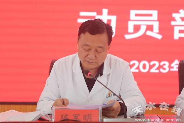 黨委委員、副院長(zhǎng)陳軍明傳達(dá)《全省三抓三促行動(dòng)動(dòng)員部署會(huì)議主要精神傳達(dá)提綱》、《天水市“抓學(xué)習(xí)促提升抓執(zhí)行促落實(shí)抓效能促發(fā)展”行動(dòng)實(shí)施方案》及《市直衛(wèi)生健康系統(tǒng)“抓學(xué)習(xí)促提升抓執(zhí)行促落實(shí)抓效能促發(fā)展”行動(dòng)實(shí)施方案》文件精神