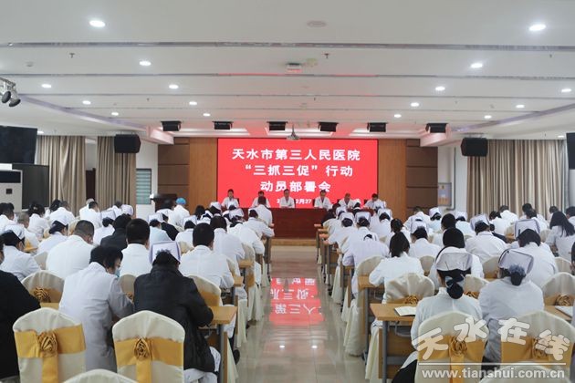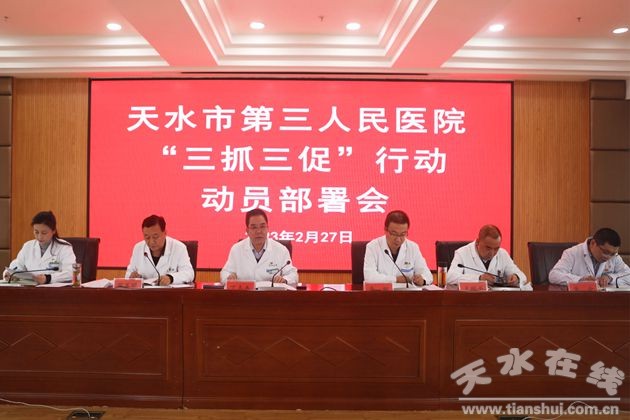 為深入學(xué)習(xí)貫徹黨的二十大精神和習(xí)近平總書(shū)記對(duì)甘肅重要講話重要指示批示精神,全面落實(shí)市委市政府“三抓三促”行動(dòng)動(dòng)員部署會(huì)議要求,2月27日,天水市第三人民醫(yī)院召開(kāi)“三抓三促”行動(dòng)動(dòng)員部署會(huì)議,專題傳達(dá)學(xué)習(xí)省、市“三抓三促”行動(dòng)動(dòng)員部署會(huì)議精神,深入解讀全市衛(wèi)生健康系統(tǒng)“三抓三促”行動(dòng)方案,并對(duì)我院開(kāi)展“三抓三促”行動(dòng)作出具體部署。院黨委領(lǐng)導(dǎo)班子成員、全院中層干部、職工代表約130余人參加會(huì)議,院黨委副書(shū)記、院長(zhǎng)李剛主持會(huì)議,院黨委書(shū)記丁志杰出席會(huì)議并講話。