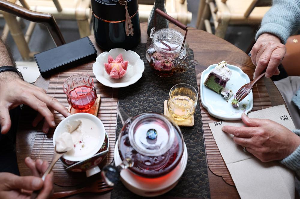 客人在享用茶和茶點(diǎn)。新華社記者 高靜 攝