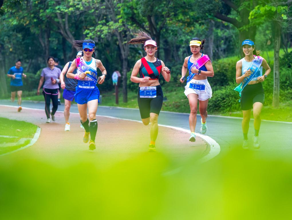 跑步愛(ài)好者在廣西梧州市玫瑰湖公園參加跑步接力賽。新華社發(fā)(何華文攝)