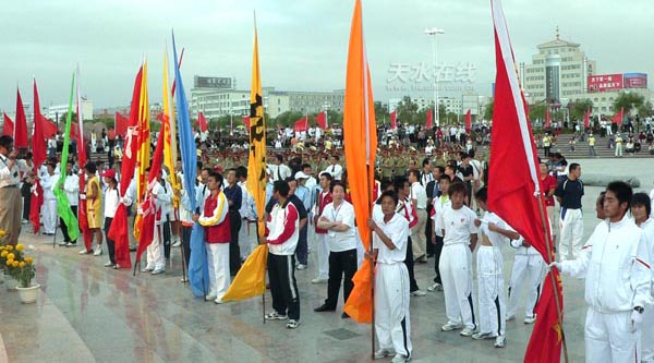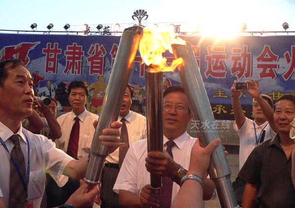 晚8時許,圣火匯集儀式在嘉峪關(guān)雄關(guān)廣場舉行。來自甘肅14個市、州的運動員代表在微風(fēng)中手持火炬,匯集在一起,點燃了兩把火炬。隨后,省十一運組委會主任、甘肅副省長李膺手中的火炬被點燃。6月12日在嘉峪關(guān)城樓文昌閣廣場點燃的火種,歷時兩個多月,傳遍了全省14個市、州,80個縣、區(qū),259個鄉(xiāng)、鎮(zhèn),將此次省運會“和諧、健身、拼搏、奮進(jìn)”的宗旨,傳遍了隴原大地,營造了濃厚的體育文化氛圍,促進(jìn)了群眾體育的發(fā)展。匯集到的圣火,19日晚上將在開幕式上點燃嘉峪關(guān)體育場的主火炬。