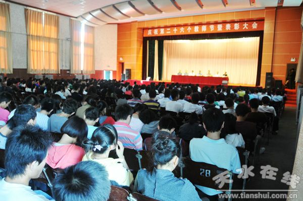 9月10日下午,甘肅工業(yè)職業(yè)技術(shù)院大學(xué)生活動(dòng)中心,千余名師生代表歡聚一堂,隆重舉行第26屆教師慶祝暨表彰大會(huì)。院黨委書(shū)記王志年,黨委副書(shū)記、院長(zhǎng)曹愛(ài)明,黨委副書(shū)記郭建忠,副院長(zhǎng)楊華、徐凱、李玉生等院領(lǐng)導(dǎo)出席了大會(huì)。大會(huì)由黨委副書(shū)、院長(zhǎng)曹愛(ài)明主持。