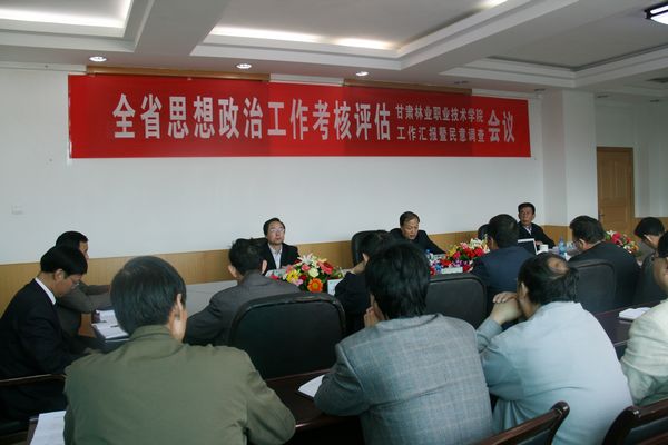 匯報會結(jié)束后,考核組還進行了民意調(diào)查、查閱資料,深入學生宿舍樓、學生食堂,對學生公寓樓思想政治工作陣地建設(shè)情況和學生飲食服務(wù)工作進行了全面考核評估,現(xiàn)場檢查、瀏覽了學院網(wǎng)站中思想政治工作網(wǎng)頁建設(shè)情況,觀看了《奮進中的甘肅林業(yè)職業(yè)技術(shù)學院》電視專題片。