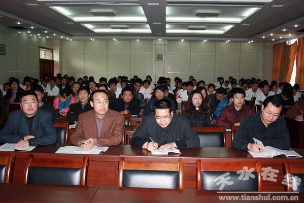 甘肅機電學(xué)院堅葆林副院長采用幻燈片的形式,分政治、經(jīng)濟、外交、軍事和教育五個板塊,通過十七個歷史事件的回顧,并配合珍貴的視頻、照片資料,就每個事件發(fā)生的時代背景、經(jīng)過、歷史意義,詳細而生動地講述了1951——1955年中國共產(chǎn)黨從新民主主義到社會主義轉(zhuǎn)變時期的這段歷史。使廣大黨員干部、入黨積極分子、共青團員從中接受了教育,特別是在建國初期就將治理貪污、防止腐敗列為頭等大事來抓,顯示了以毛澤東為核心的中國共產(chǎn)黨第一代領(lǐng)導(dǎo)人執(zhí)政的高瞻遠矚和深謀遠慮。