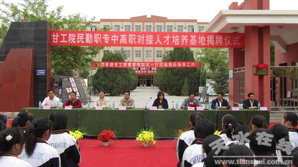 在十分熱列的氣氛中,朱紅艷與曹愛明為試驗基地揭牌。儀式結(jié)束后,又召開了座談會,就中高職如何做好招生工作的銜接、人才培養(yǎng)摸標的層次銜接、專業(yè)及課程設(shè)置的銜接、實習實訓及職業(yè)資格證書的銜接等問題展開了廣泛的討論,對目前一些能夠操作的問題達成了協(xié)議。民勤職專是一所擁有近5000名學生的中等職業(yè)技術(shù)學校,近幾年來,每年都為甘工學院輸送新生約50多名,是該院比較穩(wěn)定的生源基地之一。