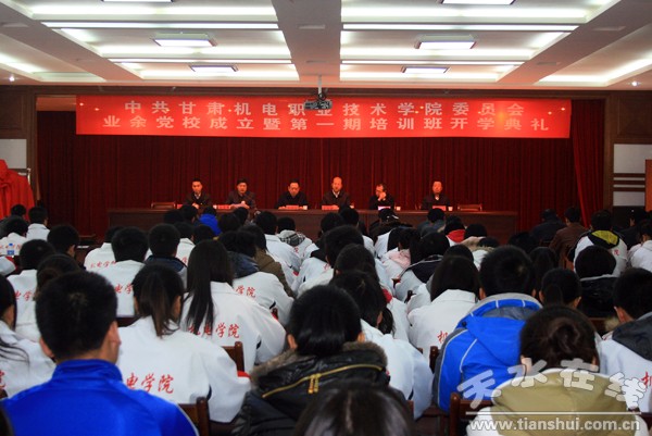 12月13日,甘肅機(jī)電職業(yè)技術(shù)學(xué)院隆重舉行業(yè)余黨校成立揭牌儀式暨業(yè)余黨校第一期培訓(xùn)班開學(xué)典禮,學(xué)院黨委書記李宗義,黨委副書記、副院長王芳弟,副院長趙彥軍、李自勇、張德龍、雷迅,以及黨辦、組織部、宣傳部負(fù)責(zé)人和各黨支部書記出席了會議。黨委副書記、副院長王芳弟主持了開學(xué)典禮。