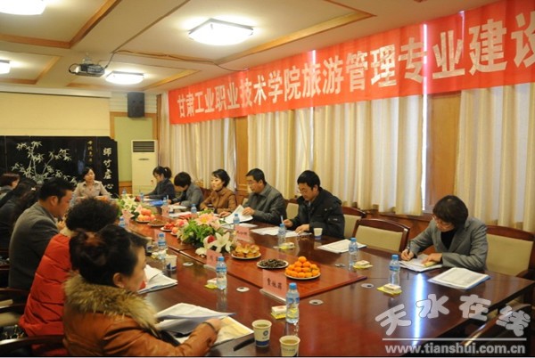 12月22日,甘肅工業(yè)職業(yè)技術(shù)學(xué)院分別召開酒店管理和旅游管理專業(yè)建設(shè)會議。邀請山東藍海酒店集團人力資源管理中心副總經(jīng)理楊兆永、福建友德酒店集團餐飲部經(jīng)理劉益民、西寧三榆榮豐酒店總經(jīng)理譚榮、甘肅工業(yè)職業(yè)技術(shù)學(xué)院副校長魯挑建、校實訓(xùn)中心主任趙虎利、福建友德酒店集團餐飲部經(jīng)理劉益民、山東藍海酒店集團西北片經(jīng)理王南、甘肅絲綢之路旅行社總經(jīng)理張立軍、蘭州春光旅行社總經(jīng)理閻麗華及上海分區(qū)經(jīng)理賈依菲、市博物館館長高世華及主任杜麗敏、天水和平旅行社總經(jīng)理周興發(fā)、仁之旅旅行社經(jīng)理劉萍等旅游企業(yè)資深專家出席會議。