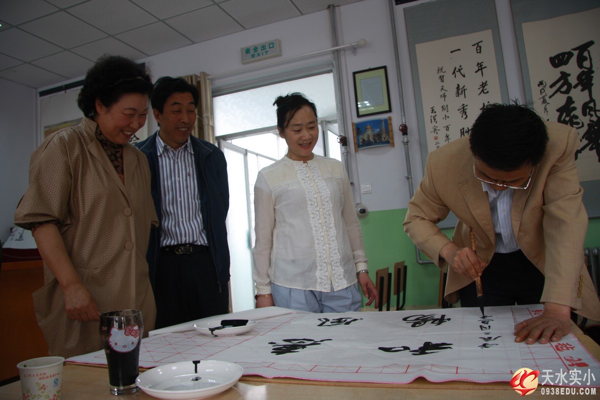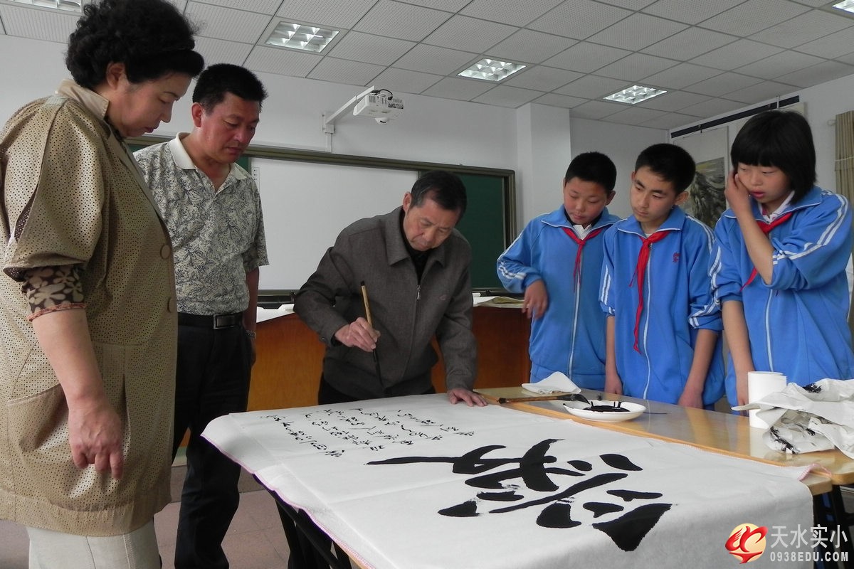(書(shū)法家對(duì)天水實(shí)驗(yàn)小學(xué)的師生進(jìn)行臨帖輔導(dǎo)和書(shū)法寫(xiě)作示范)