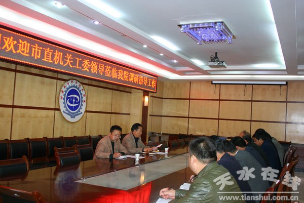 周錄華副書記一行先參觀了校園建設(shè)和黨員教育活動(dòng)陣地,后聽取了工作匯報(bào)。會(huì)上,王芳弟副書記代表學(xué)院向市直機(jī)關(guān)工委領(lǐng)導(dǎo)的到來表示熱烈歡迎,并簡要介紹了學(xué)院近年來建設(shè)和發(fā)展概況。他講到,自9月份接到市直機(jī)關(guān)工委《關(guān)于對(duì)發(fā)展黨員和黨員管理工作進(jìn)行調(diào)研的通知》,學(xué)院黨委高度重視,立即安排部署相關(guān)工作,積極做好調(diào)研準(zhǔn)備。黨委歷來十分重視黨建工作,在黨員發(fā)展中堅(jiān)持質(zhì)量與數(shù)量并重,并及時(shí)做好黨員管理工作中電子信息化采集、匯總及上報(bào)。今年學(xué)院又開展作風(fēng)建設(shè)年活動(dòng)和群眾路線教育實(shí)踐活動(dòng)。副院長趙彥軍匯報(bào)了2010年以來學(xué)院黨員組織發(fā)展和管理情況。
