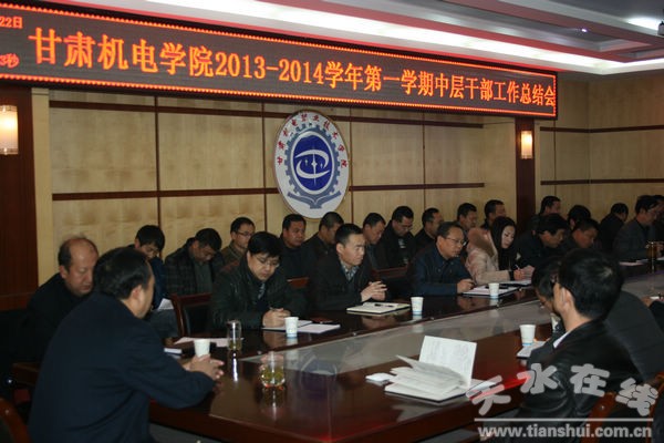 近日,甘肅機電職業(yè)技術(shù)學(xué)院召開2013-2014學(xué)年第一學(xué)期 “三三制” 中層干部工作總結(jié)會。學(xué)院領(lǐng)導(dǎo)班子成員出席會議并作具體點評,全體中層干部和中層干部助理參加,按要求總結(jié)全學(xué)期工作。