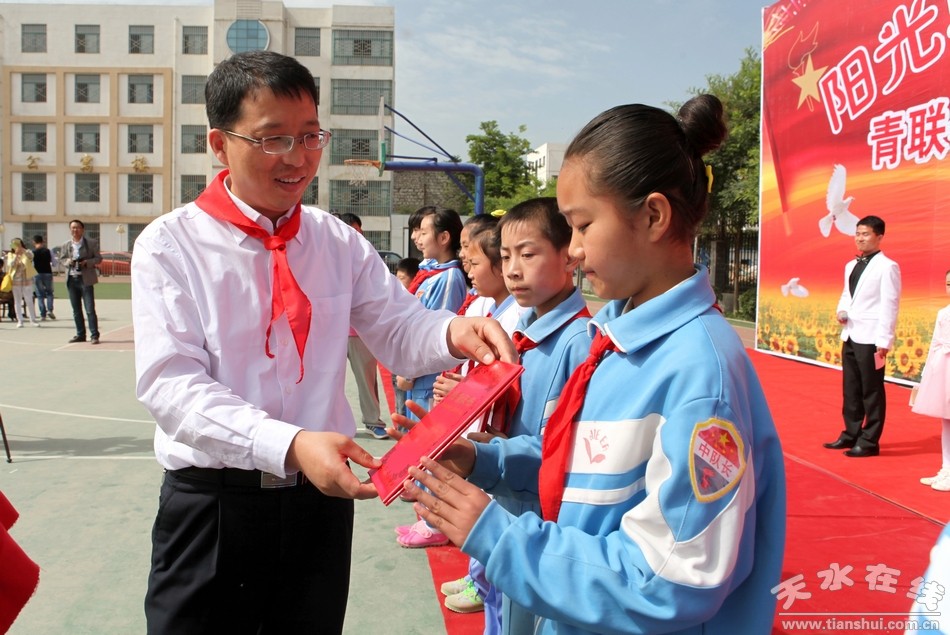 活動(dòng)中,少先隊(duì)員代表為與會(huì)領(lǐng)導(dǎo)佩戴紅領(lǐng)巾,與會(huì)領(lǐng)導(dǎo)為受表彰的全市優(yōu)秀輔導(dǎo)員和優(yōu)秀少先隊(duì)員頒發(fā)了證書(shū)。同時(shí),與會(huì)嘉賓一起給特殊教育學(xué)校的孩子們發(fā)放了由天水卷煙廠捐資15000余元贈(zèng)送的380個(gè)愛(ài)心杯。最后,由市青聯(lián)委員和市特殊教育學(xué)校的學(xué)生一起開(kāi)展了慶!傲弧蔽乃囇莩龌顒(dòng),文藝節(jié)目豐富多彩,有合唱、朗誦、獨(dú)唱、舞蹈等,大家用精彩的表演博得陣陣熱烈的掌聲,活動(dòng)在市青聯(lián)委員合唱的《二十年后再相會(huì)》的歌聲中落下帷幕。