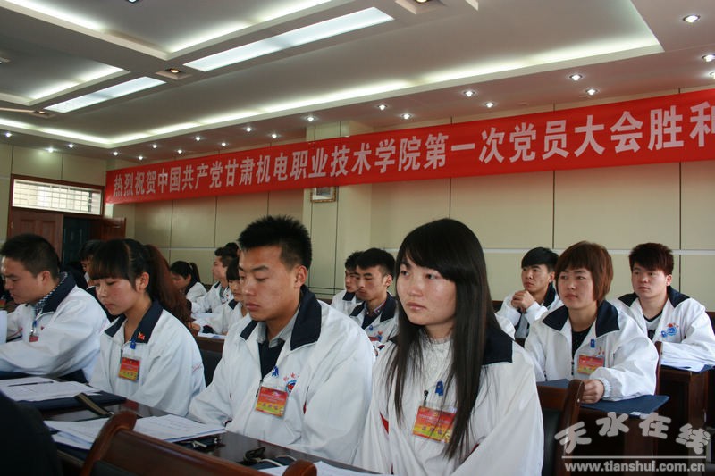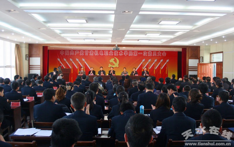 省委組織部正處級組織員徐建群,天水市委常委、組織部長王光慶,省工業(yè)和信息化委員會黨組成員、紀檢組長周繼堯,省高校工委副書記賈寧,天水市直機關(guān)工委書記雒建明,學院黨委書記李宗義,院長張炯等在主席臺就坐。