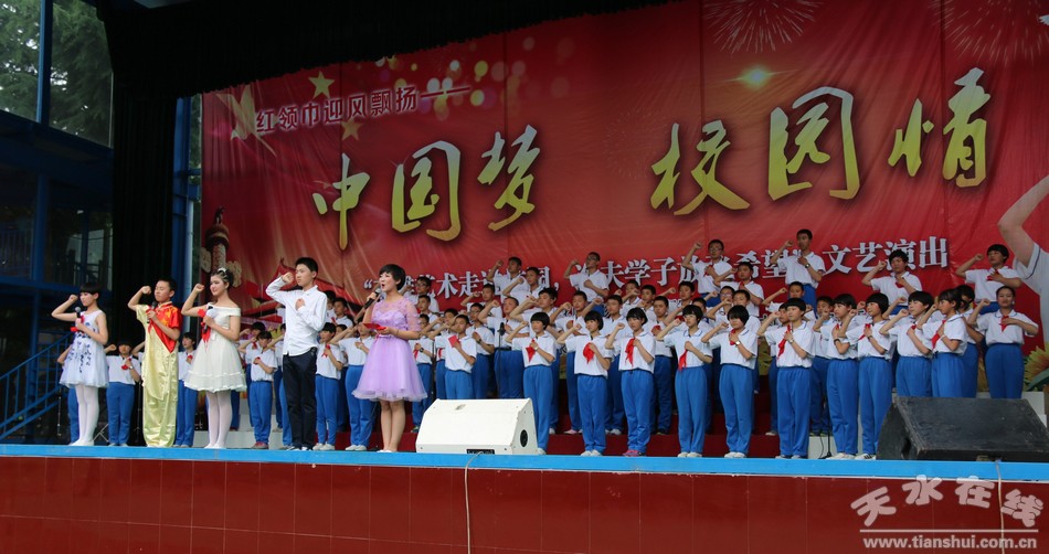 5月24日下午,天水市逸夫?qū)嶒?yàn)中學(xué)操場(chǎng)內(nèi)歡聲笑語(yǔ),掌聲如雷。七年級(jí)全體師生及家長(zhǎng)代表們共800多人歡聚一堂,載歌載舞,舉行以“校園夢(mèng)精彩無(wú)限,紅領(lǐng)巾迎風(fēng)飄揚(yáng)”為主題的慶!傲?一”國(guó)際兒童節(jié)暨七年級(jí)少先隊(duì)員退隊(duì)紀(jì)念活動(dòng)。