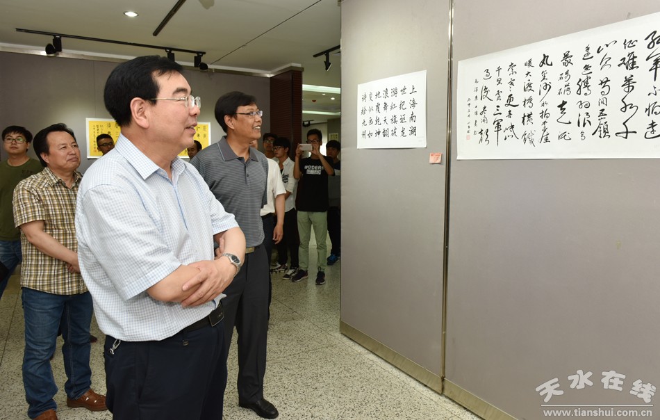 2016年是中國共產(chǎn)黨成立95周年和紅軍長征勝利80周年,為大力弘揚(yáng)愛國主義精神,謳歌中華民族實(shí)現(xiàn)偉大復(fù)興中國夢的奮斗歷程,追尋革命先輩的光輝足跡,引導(dǎo)、培育廣大青年學(xué)生積極踐行社會主義核心價值觀,6月12至14日,由天水師范學(xué)院團(tuán)委主辦,美術(shù)與藝術(shù)設(shè)計學(xué)院團(tuán)委承辦的慶祝建黨95周年暨紅軍長征勝利80周年學(xué)生書畫展在藝術(shù)館展出,學(xué)校黨委副書記師平安和有關(guān)部門負(fù)責(zé)人參觀了書畫展。
