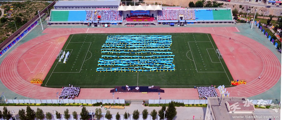 ▲天水在線航拍甘肅省第三屆中學生運動會開幕式帶妝彩排 |