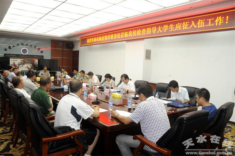 8月11日下午,甘肅省政府第四督查組在天水市、麥積區(qū)有關(guān)領(lǐng)導的陪同下,到甘肅工業(yè)職業(yè)技術(shù)學院檢查指導大學生應(yīng)征入伍工作,該校校長曹愛明、該校征兵工作領(lǐng)導小組成員及相關(guān)人員參加了匯報。