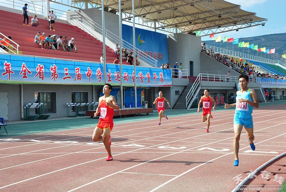 8月13日上午,隨著男子110米欄發(fā)令槍響,正式拉開了甘肅省第三屆中學(xué)生運(yùn)動(dòng)會(huì)男徑比賽的戰(zhàn)幕。來自全省14個(gè)代表隊(duì)320名運(yùn)動(dòng)員陸續(xù)上演110米欄、400米、5000米、3000米、4×400米接力、跳高、三級(jí)跳遠(yuǎn)、鐵餅等項(xiàng)目的比拼。通過一天的激烈競爭,田徑賽場共決出7枚金牌,蘭州代表隊(duì)表現(xiàn)不俗,共攬獲5塊金牌,天水代表隊(duì)獲得1塊,白銀代表隊(duì)獲得一塊。