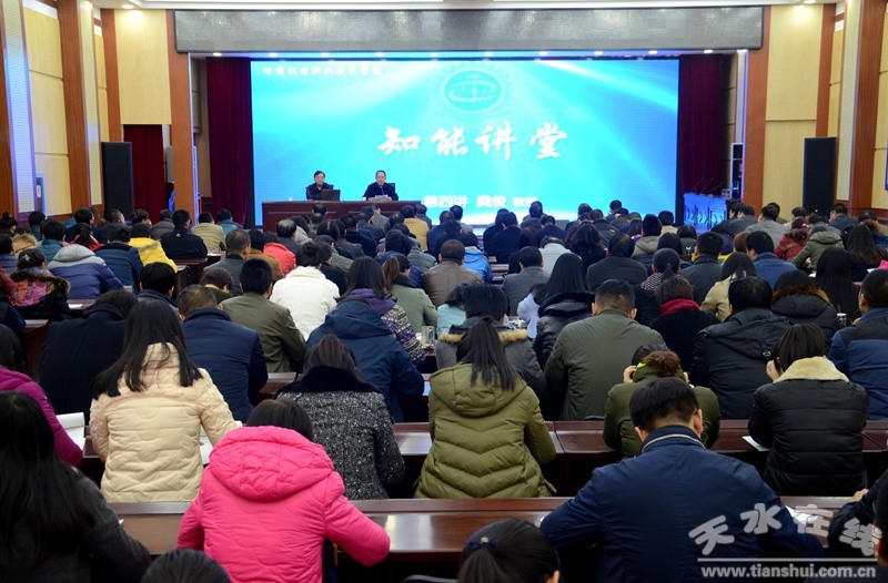 黨委書記李宗義主持講座。學(xué)院在家領(lǐng)導(dǎo),全體教職工200多人聆聽講座。