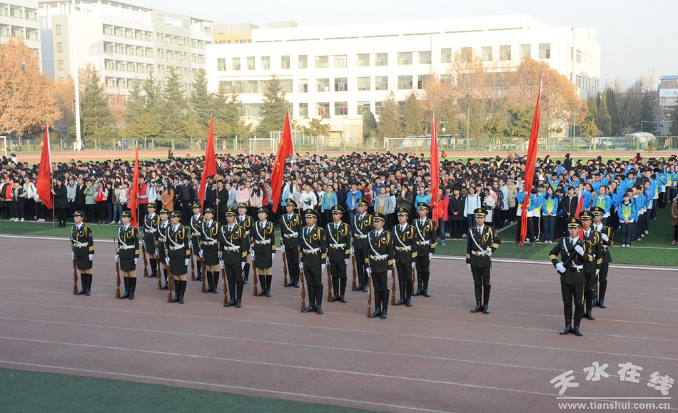 12月8日,天水師范學(xué)院首屆國(guó)旗護(hù)衛(wèi)隊(duì)成立儀式在東塑膠操場(chǎng)舉行。黨委副書記師平安、紀(jì)委書記李淳、相關(guān)職能部門負(fù)責(zé)人及各二級(jí)學(xué)院分管學(xué)生工作領(lǐng)導(dǎo)、各二級(jí)學(xué)院分團(tuán)委書記和3000余名師生代表共同見證了國(guó)旗護(hù)衛(wèi)隊(duì)的成立。