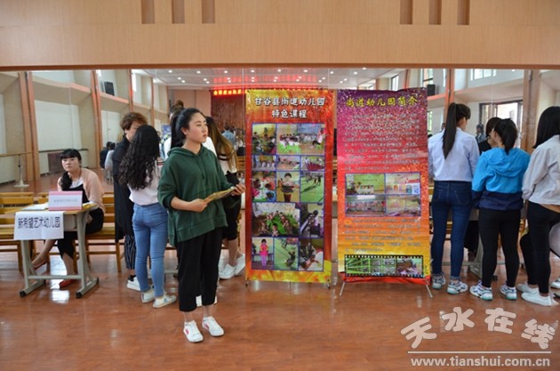 2017年5月14日上午,在天水市職業(yè)技術(shù)學(xué)校本部大禮堂舉行了2017屆學(xué)前教育專業(yè)學(xué)生就業(yè)招聘會。全市28個幼兒園、早教機構(gòu)受邀參加了此次招聘會。