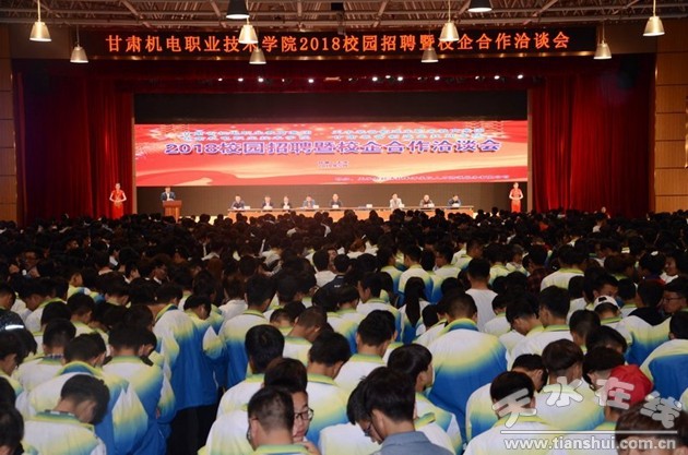 五月的機(jī)電學(xué)院,鮮花盛開,綠樹縈翠,嘉賓復(fù)滿堂。5月10日,甘肅機(jī)電職業(yè)技術(shù)學(xué)院2018年校園招聘暨校企合作洽談會隆重舉行。學(xué)院黨委書記李宗義致歡迎辭,天水市教育局常務(wù)副局長高強(qiáng)講話。甘肅省機(jī)電職教集團(tuán)、甘肅裝備制造業(yè)職教集團(tuán)成員單位負(fù)責(zé)人,154家參會企業(yè)代表,在家院領(lǐng)導(dǎo)及全體師生參加開幕式。開幕式由副院長張德龍主持。