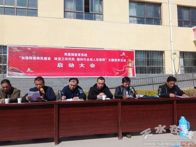 為深入貫徹落實(shí)《中共中央國(guó)務(wù)院關(guān)于全面深化新時(shí)代教師隊(duì)伍建設(shè)改革的意見(jiàn)》和全國(guó)及省市縣教育工作會(huì)議精神,全面加強(qiáng)師德師風(fēng)建設(shè),轉(zhuǎn)變工作作風(fēng),落實(shí)立德樹(shù)人根本任務(wù),進(jìn)一步提升教師思想政治素質(zhì)和職業(yè)道德水平,強(qiáng)化服務(wù)意識(shí)、責(zé)任意識(shí)和法制意識(shí),規(guī)范職業(yè)行為,努力辦好人民滿意教育,秦安縣郭嘉學(xué)區(qū)于3月30日召開(kāi)全鎮(zhèn)“加強(qiáng)師德師風(fēng)建設(shè),轉(zhuǎn)變工作作風(fēng),做新時(shí)代合格人民教師”主題教育活動(dòng)啟動(dòng)大會(huì)。秦安縣教育局、郭嘉鎮(zhèn)政府、郭嘉學(xué)區(qū)相關(guān)負(fù)責(zé)人,以及各學(xué)校校長(zhǎng)、支部書(shū)記、幼兒園園長(zhǎng)及全鎮(zhèn)教師,共計(jì)230余人參加會(huì)議。