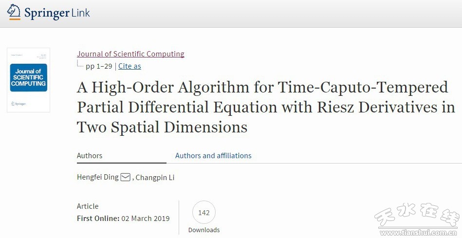 近日獲悉,天水師范學(xué)院數(shù)學(xué)與統(tǒng)計(jì)學(xué)院教師丁恒飛博士與其合作者在計(jì)算數(shù)學(xué)領(lǐng)域國際著名期刊《Applied Numerical Mathematics》和《Journal of Scientific Computing》上分別發(fā)表題為《A high-order numerical algorithm for two-dimensional time–space tempered fractional diffusion-wave equation》和《A High-Order Algorithm for Time-Caputo Tempered Partial Differential Equation with Riesz Derivatives in Two Spatial Dimensions》的學(xué)術(shù)論文。這兩個(gè)期刊在國際計(jì)算數(shù)學(xué)領(lǐng)域內(nèi)都具有較高的學(xué)術(shù)影響力和知名度,分別隸屬于世界著名的科學(xué)文獻(xiàn)出版集團(tuán)Elsevier和Springer,且均為中科院大類分區(qū)二區(qū)期刊,JCR分區(qū)一區(qū)期刊,2018年影響因子分別為1.236和1.814。