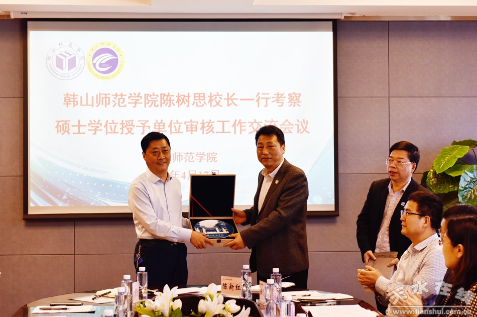 陳樹思簡要介紹了韓山師范學院的辦學歷程和學校發(fā)展的基本情況,說明了此次訪問的主要目的,并對學校的熱情接待表示感謝。他希望天水師院申碩的成功經(jīng)驗可以給予韓山師范學院正在開展的申碩工作以啟示和幫助。