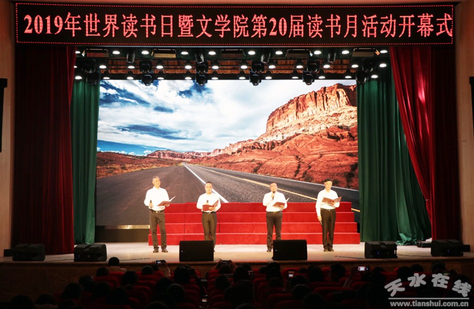 4月18日晚,天水師范學院文傳學院和天水市文化館聯(lián)合舉辦的“傳承發(fā)展•自信擔當——禮敬中華優(yōu)秀傳統(tǒng)文化”迎世界讀書日暨天水師范學院文傳學院第20屆讀書月活動在大禮堂開幕。此次讀書月活動也是天水師院慶祝建校60周年和新中國成立70周年系列活動之一。