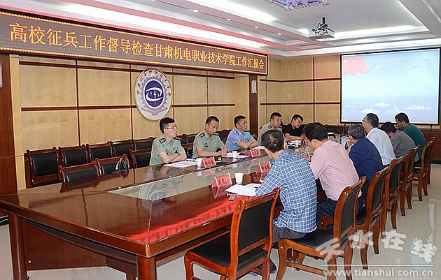 6月21日下午,高校征兵工作督導(dǎo)組蒞臨甘肅機(jī)電學(xué)院檢查指導(dǎo)工作。天水市委常委、軍分區(qū)司令員、市征兵領(lǐng)導(dǎo)小組副組長(zhǎng)劉甫清,軍分區(qū)動(dòng)員處處長(zhǎng)侯長(zhǎng)勤,軍分區(qū)動(dòng)員處副團(tuán)職參謀梅順安,秦州區(qū)委常委、區(qū)人民武裝部部長(zhǎng)姚永彥等督導(dǎo)組成員督導(dǎo)檢查,學(xué)院黨委書(shū)記堅(jiān)葆林、副院長(zhǎng)毛文輝及有關(guān)部門(mén)負(fù)責(zé)人一同參加。