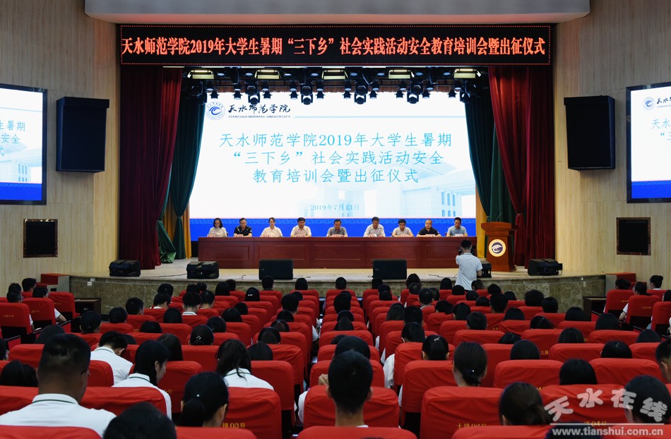 7月13日,天水師院舉行2019年“三下鄉(xiāng)”暑期社會實踐活動安全教育培訓會暨出征儀式。副校長安建平出席會議并講話,黨委宣傳部、教務處、學生工作處、財務處、招就處、科研處、保衛(wèi)處、校團委負責人以及各二級學院團委書記、帶隊教師和參加社會實踐活動的500余名同學參加會議。