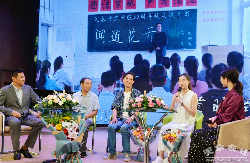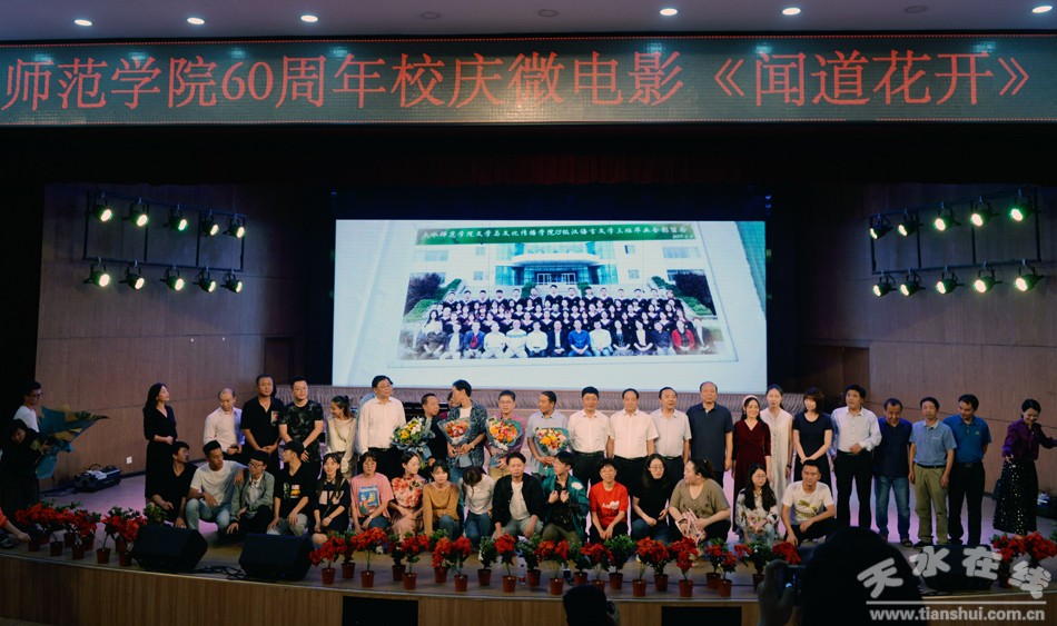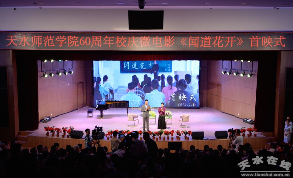 2019年10月12日,天水師范學(xué)院將迎來建校60周年華誕。9月8日晚,為慶祝建校60周年而專門創(chuàng)作的微電影《聞道花開》在學(xué)校音樂廳首映。學(xué)校校長安濤,副校長汪詠國、安建平,微電影贊助方甘肅第二建設(shè)集團有限責(zé)任公司黨委書記、董事長王春景一行,導(dǎo)演陳響園和微電影主創(chuàng)團隊,演職人員,學(xué)校80余名校友代表以及200余名師生參加首映式。