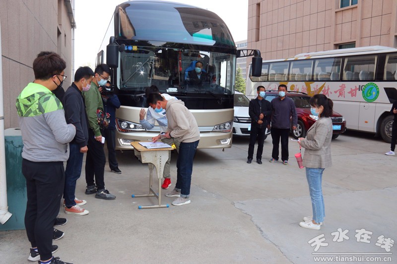 車站接站點(diǎn)工作人員組織學(xué)生間隔1米、佩戴口罩排隊(duì),等候測(cè)溫、審核身份、發(fā)放乘車票、登記信息,有序乘車返校。到校門口,工作人員認(rèn)真對(duì)所有返校學(xué)生雙手及所帶行李進(jìn)行徹底消毒,再行出示“健康出行碼”確認(rèn)身份,進(jìn)入“紅外線測(cè)溫區(qū)”再次測(cè)量體溫,確認(rèn)體溫正常后,進(jìn)入“等候區(qū)”,待所有人員測(cè)溫正常后,分別在二級(jí)學(xué)院信息采集點(diǎn)登記入校。