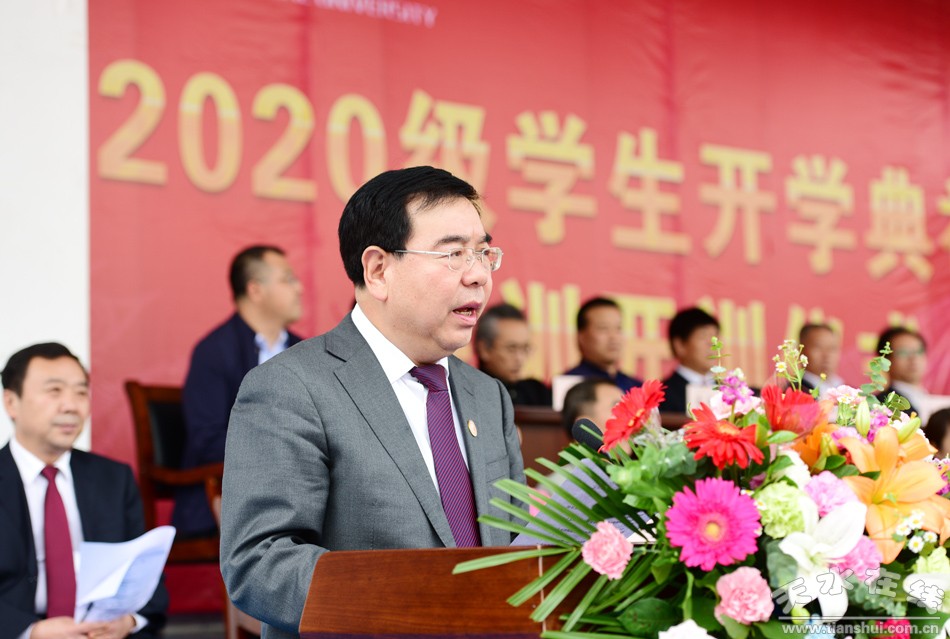 黨委書(shū)記李正元代表學(xué)校向每一位新生的到來(lái)表示歡迎,向光臨大會(huì)的來(lái)賓、96743部隊(duì)首長(zhǎng)和承擔(dān)軍訓(xùn)任務(wù)的全體教官表示感謝。李正元表示,天水師范學(xué)院至今已走過(guò)了六十一年的光輝歷程,一代代師院人櫛風(fēng)沐雨、砥礪前行,不忘立德樹(shù)人初心,奉獻(xiàn)祖國(guó)教育事業(yè);一代代師院人守正奮進(jìn)、創(chuàng)新進(jìn)取,立足隴原大地,服務(wù)經(jīng)濟(jì)社會(huì)發(fā)展,形成了自己的辦學(xué)特色、辦學(xué)風(fēng)格和大學(xué)文化;一代代師院人在困境中求生存、奮斗中謀發(fā)展,艱辛探索,玉汝于成,成功創(chuàng)出了一條在不發(fā)達(dá)地區(qū)的辦學(xué)之路。