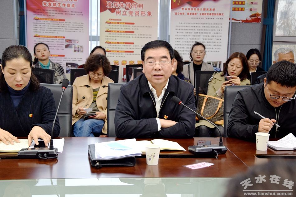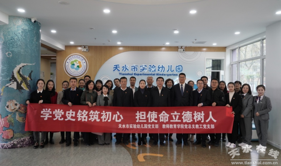 4月9日上午,天水市實(shí)驗(yàn)幼兒園黨支部聯(lián)合天水師范學(xué)院教師教育學(xué)院黨總支教工支部共同開(kāi)展題為“學(xué)黨史 銘初心 做貢獻(xiàn)”主題黨日活動(dòng);顒(dòng)由園黨支部書(shū)記、副園長(zhǎng)王銳主持,天水師范學(xué)院黨委常委、黨委副書(shū)記師平安;天水市委教育工委副書(shū)記、局黨組成員、副局長(zhǎng)張秀麗;石馬坪街道東團(tuán)莊社區(qū)黨委書(shū)記曹剛及天水師范學(xué)院教師教育學(xué)院教工支部黨員及教師,石馬坪街道東團(tuán)莊社區(qū)黨委黨員,市實(shí)驗(yàn)幼兒園黨員及教職工共計(jì)70余人參加了本次活動(dòng)。