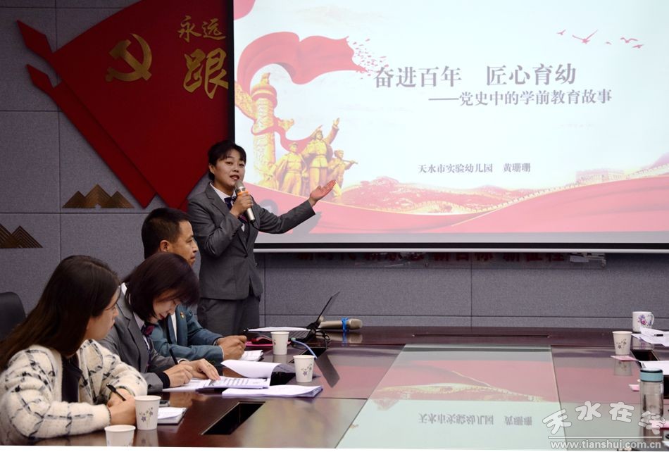 天水師范學(xué)院馬克思主義學(xué)院侯智教授作了《學(xué)習(xí)黨史理論,堅(jiān)定理想信念》的黨史學(xué)習(xí)教育專(zhuān)題黨課。黨課深入淺出地講了中國(guó)共產(chǎn)黨自成立以來(lái)經(jīng)歷的站起來(lái)、富起來(lái)、強(qiáng)起來(lái)三個(gè)階段以及從黨史中獲得的經(jīng)驗(yàn)和啟示。天水師范學(xué)院教師教育學(xué)院教工支部黨員徐富平、天水市實(shí)驗(yàn)幼兒園黨員黃珊珊兩位教師根據(jù)自己分學(xué)科專(zhuān)業(yè)和崗位工作現(xiàn)場(chǎng)講述了題為《長(zhǎng)征組歌》的故事及黨史中的學(xué)前教育故事。全體與會(huì)黨員實(shí)際觀(guān)摩考察了天水市實(shí)驗(yàn)幼兒園黨建陣地、班級(jí)建設(shè)、幼兒教育功能區(qū)以及教育文化環(huán)境創(chuàng)設(shè)。