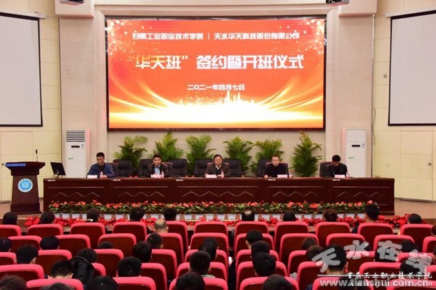 甘肅工業(yè)職業(yè)技術(shù)學(xué)院黨委書記楊聲在致辭中指出,學(xué)校與天水華天科技集團(tuán)共建“華天班”,開展聯(lián)合招生、聯(lián)合培養(yǎng),這是產(chǎn)教融合、校企合作的又一次深度結(jié)合,是學(xué)校為產(chǎn)業(yè)賦能的一大探索,也是推動(dòng)職業(yè)教育高質(zhì)量發(fā)展的關(guān)鍵所在。學(xué)校將與企業(yè)攜手,共同創(chuàng)新職業(yè)教育的人才培養(yǎng)模式,不斷提高學(xué)校教育教學(xué)的專業(yè)化和職業(yè)化,提升學(xué)生的就業(yè)創(chuàng)業(yè)能力,為地區(qū)經(jīng)濟(jì)社會(huì)發(fā)展培養(yǎng)更多的高素質(zhì)應(yīng)用型人才。